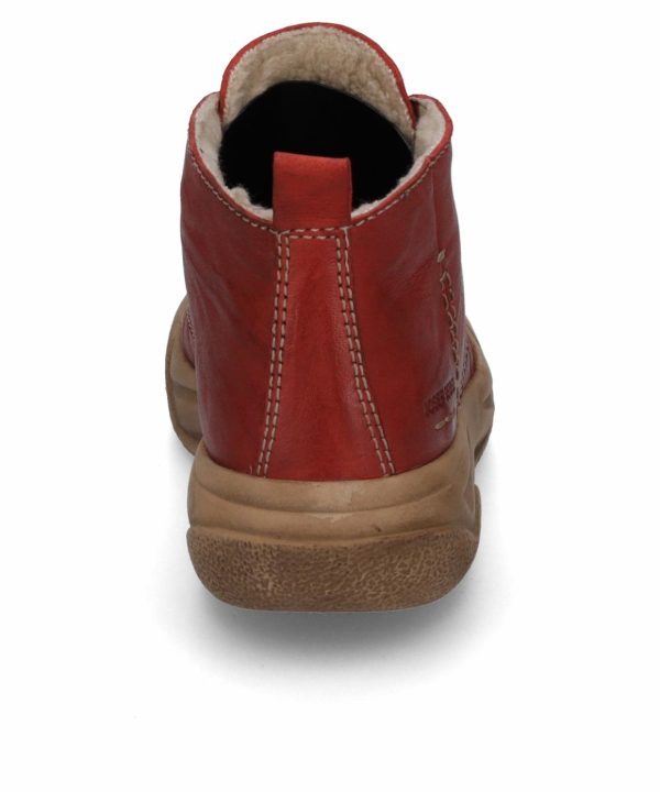Die Schnürung bietet nicht nur einen festen Halt, sondern verleiht den Stiefeletten auch einen modernen und alltagstauglichen Look. In Kombination mit dem roten Schafsleder entsteht so ein Schuh, der zu Deinem individuellen Stil passt und Deine Persönlichkeit unterstreicht.