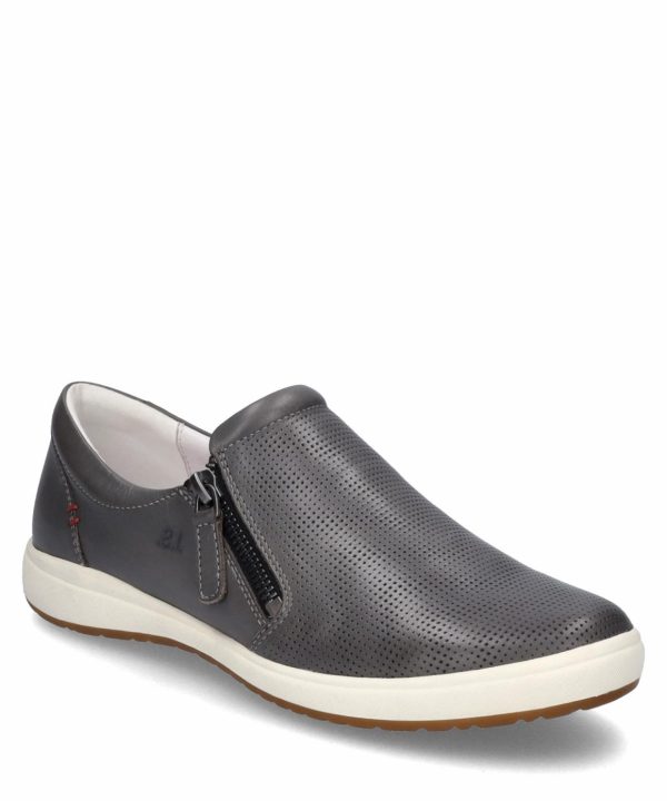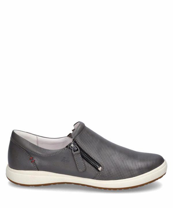 JOSEF SEIBEL präsentiert Dir den Caren 22, ein Slipper, der Deinen individuellen Weg stilvoll begleitet. Mit seinem graphiten Kalbsleder setzt er ein modisches Statement und zeigt, dass Komfort und Chic Hand in Hand gehen können. Sein praktischer Reißverschluss macht das An- und Ausziehen zum Kinderspiel.